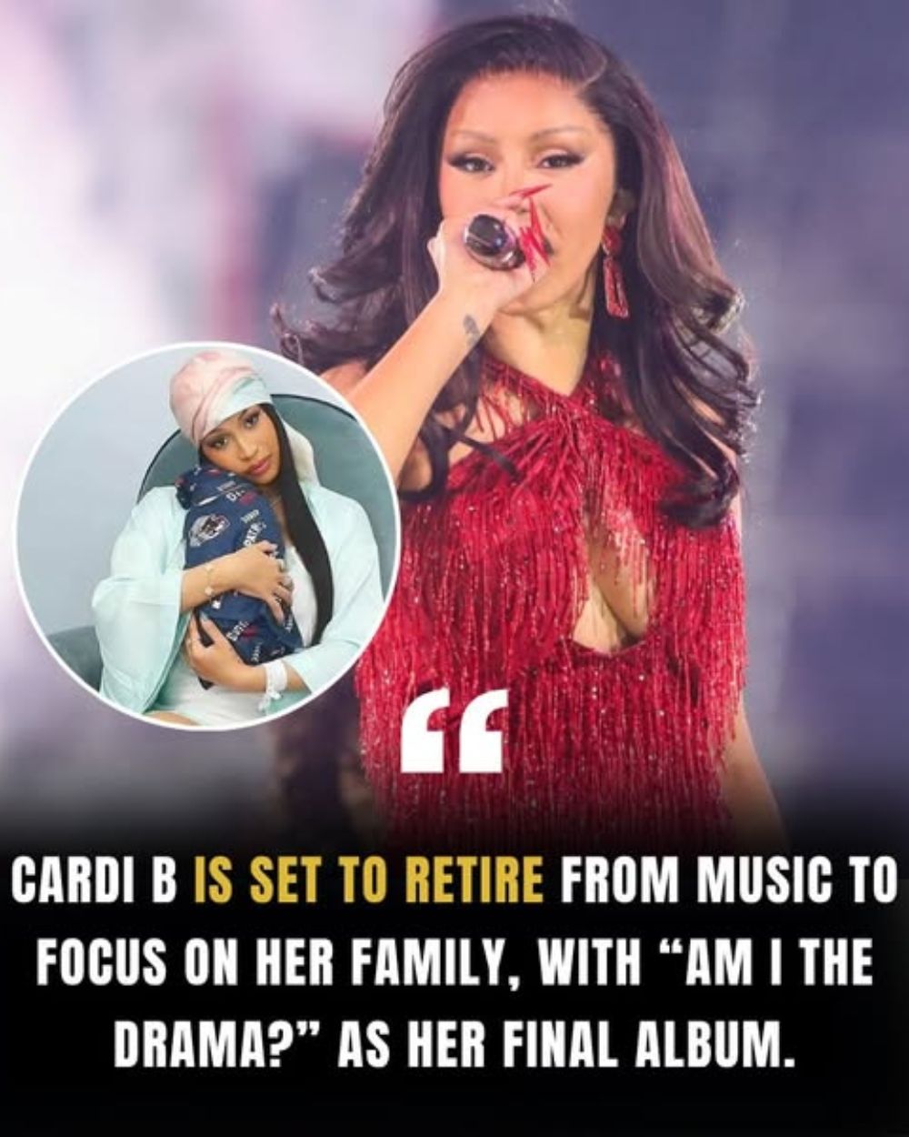 SHOCKING NEWS: Fans around the world were left stunned as reports emerged that Cardi B, the Grammy-winning superstar rapper, is considering stepping away from the music industry to focus entirely on her family. According to a source close to the star, Cardi has made the life-changing decision to take a break from the spotlight, and her highly anticipated album, “Am I the Drama?”, will mark her final project.